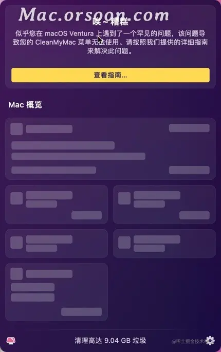 以上就是关于“macOS Ventura 13系统安装新版CleanMyMac菜单栏/概览不显示内容的解决方法”的全部内容了,希望能对你有所帮助。
