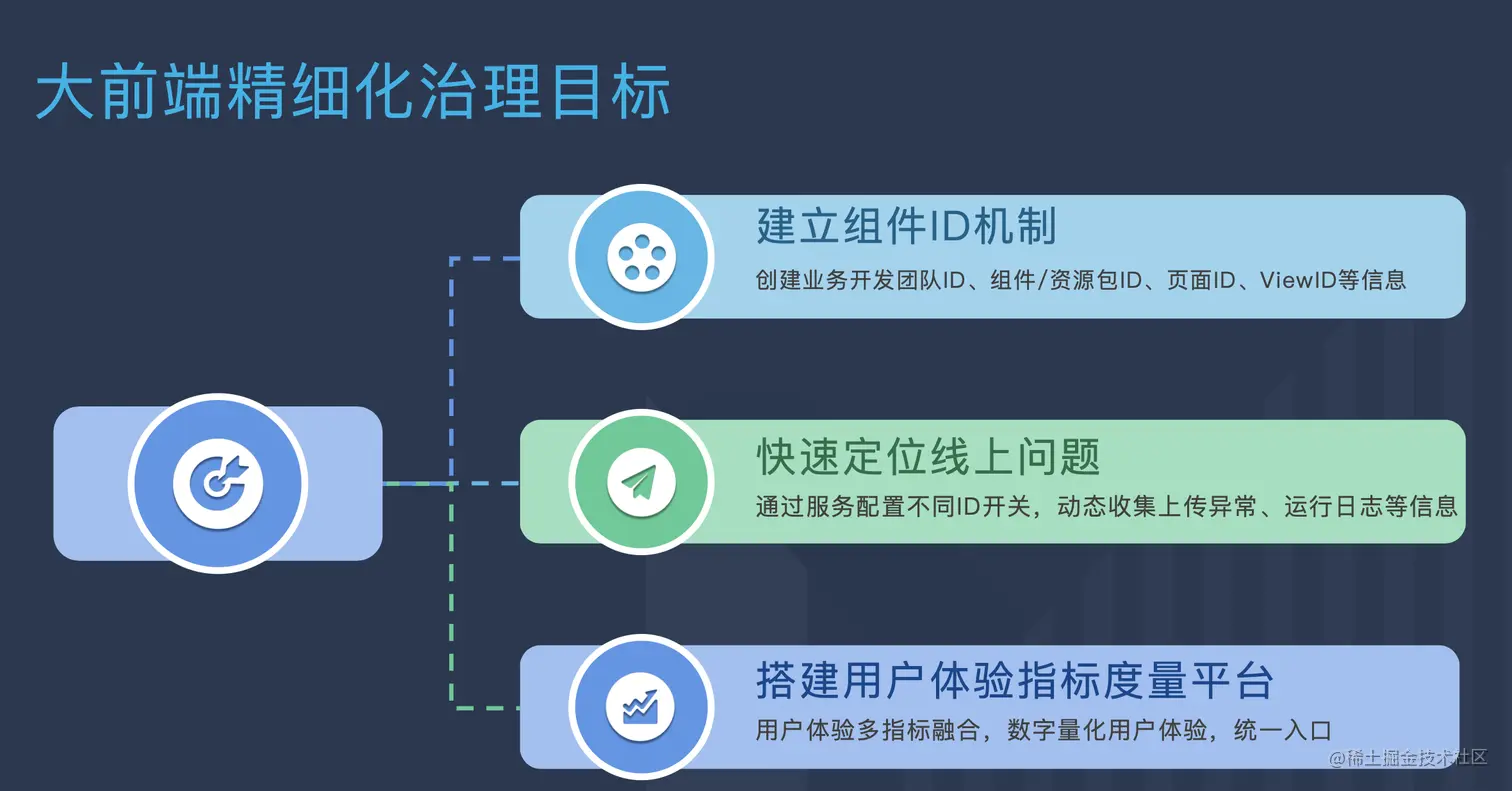 - 在目前前端体系也逐渐走向精细化运营和质量开发,用户体验问题也越来越重要,很多时候在现有复杂的业务场景下,很难只通过某种技术迭代或技术架构重构,就让产品的体验上升一个台阶。这种情况下,就需要我们对线上体验情况有更加精准的掌握,也对我们的前端监控能力提出了更高的要求,不能只停留在基础的技术指标层面。需要对指标变化的根因有细致的分析和处理。