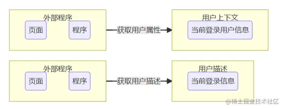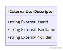 IExternalUserDescriptor 类似, 但是因为它的访问属性是固定的,包含了用户id、用户名称等三个属性, 所以没必要再内置 user 对象, 直接构建 IExternalUserDescriptor 对应属性即可