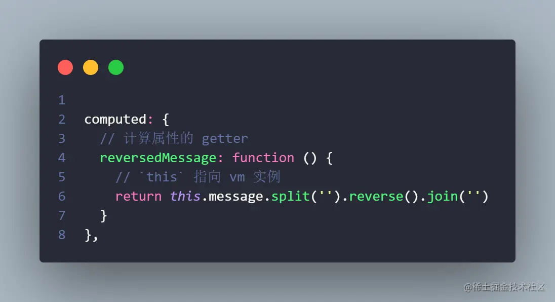 我们提供的函数将用作 property vm.reversedMessage 的 getter 函数。