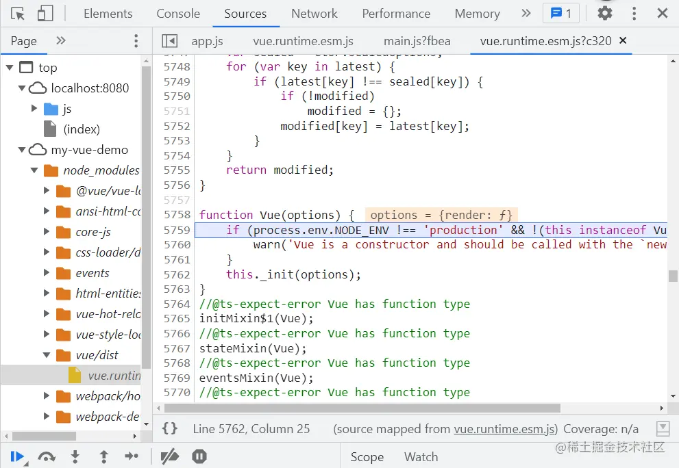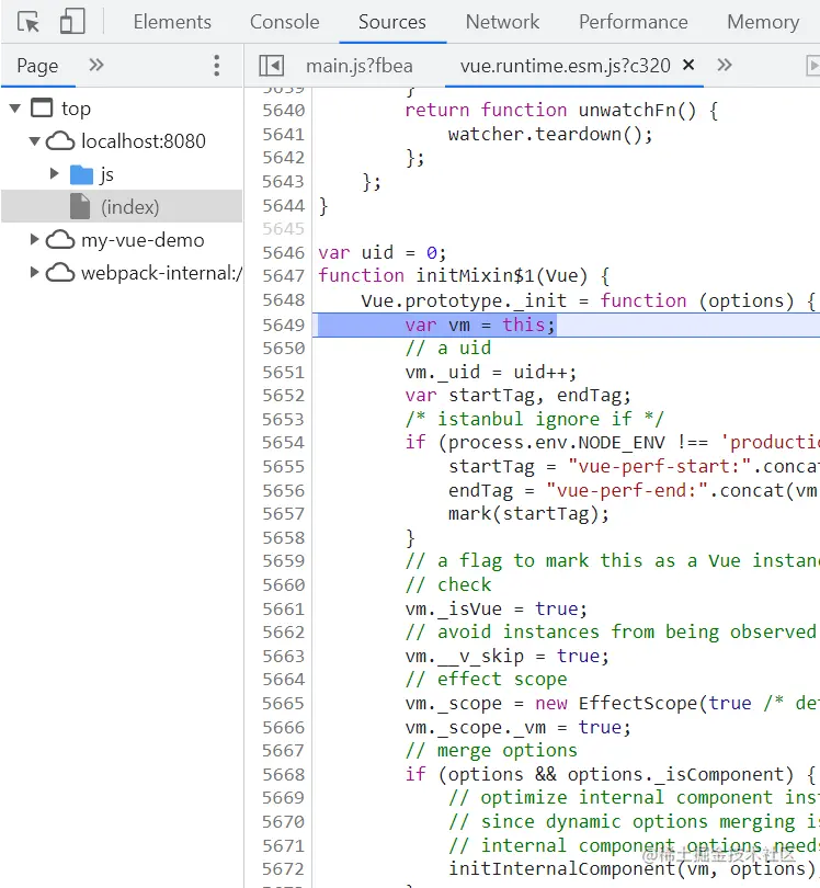 对Vue实例化,打断点看一下