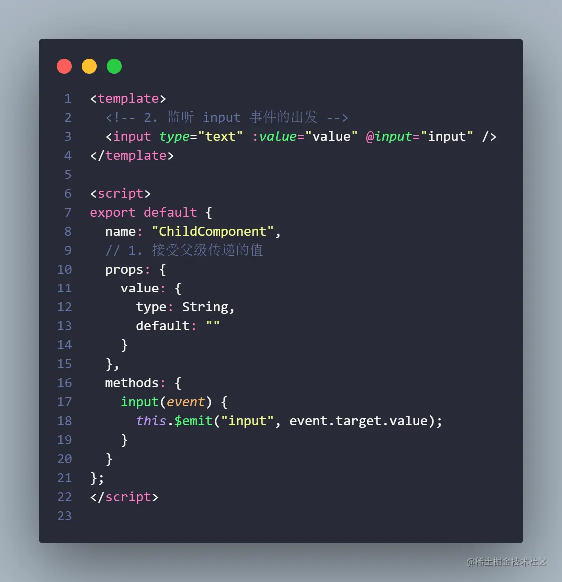 v-model默认会用 名为value的prop和名为input的事件,在子组件通过$emit触发一个事件。 -
