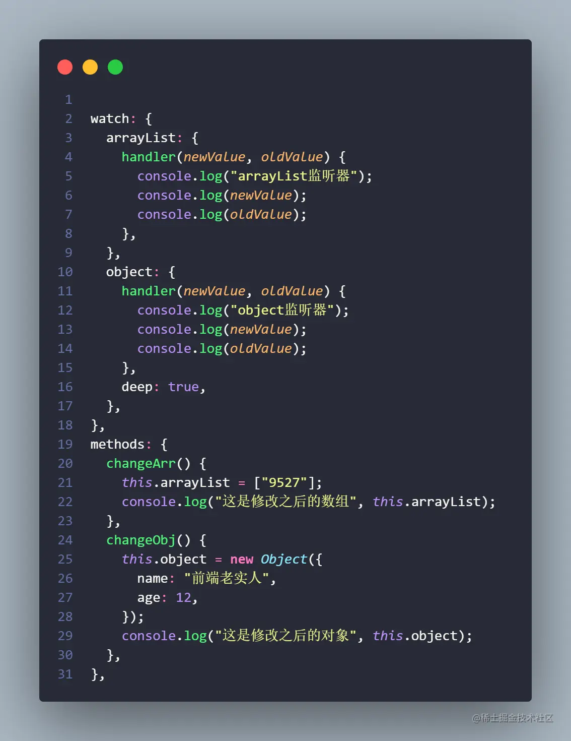 handler:监听数组或对象的属性时用到的方法**