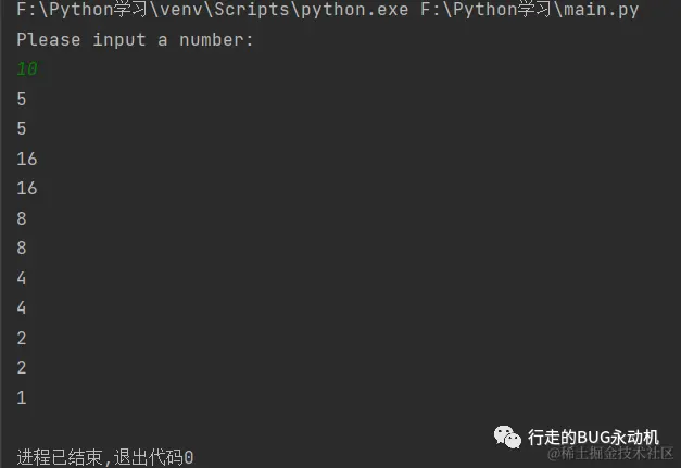 题目要求不断调用collatz()函数,直到返回值为1