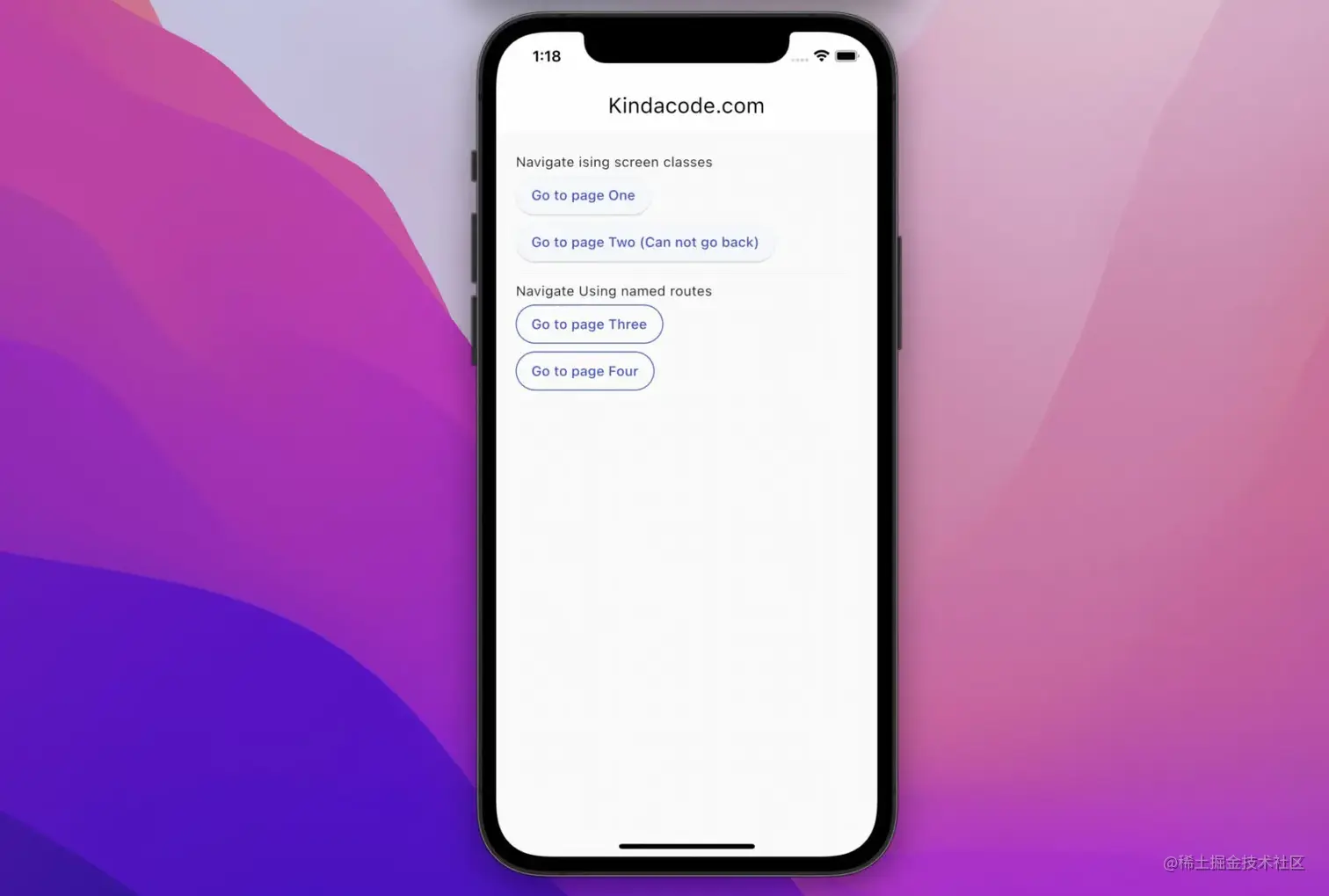 - PageTwo: There is no back button in the app bar.