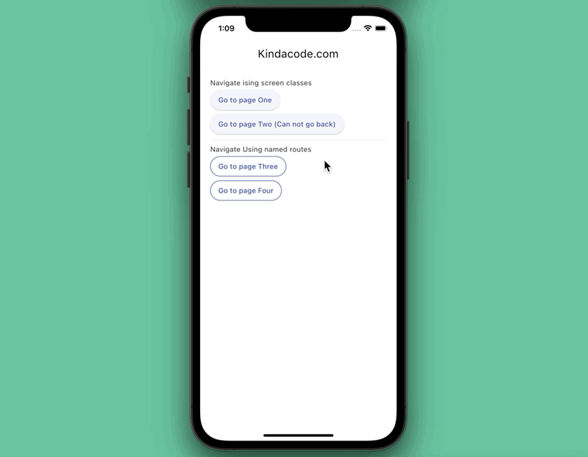 - PageThree: Displays a number passed in from the Home page via arguments. There is a back button to go back.