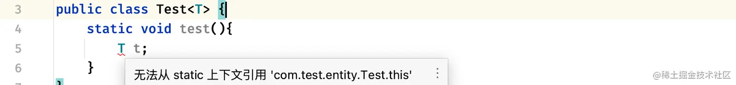 泛型将数据类型的确定控制在了编译阶段,在编写代码的时候就能明确泛型的类型,如果类型不符合,将无法通过编译!因为是具体使用对象时才会明确具体类型,所以说静态方法中是不能用的: