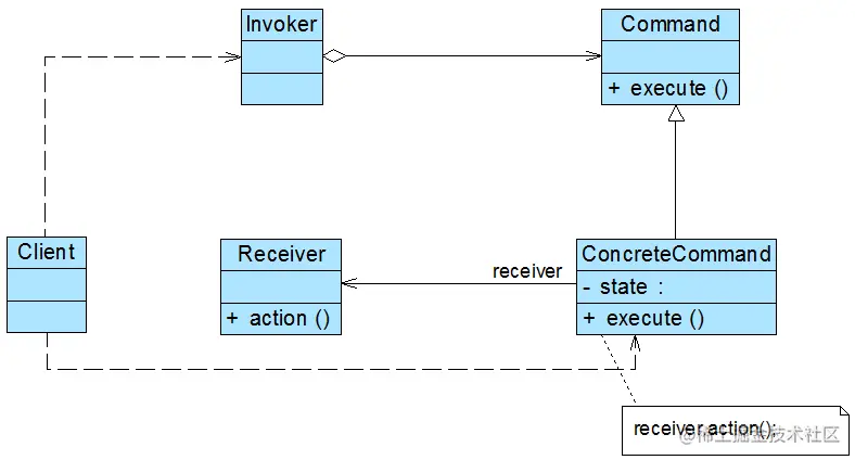 在命令模式结构图中包含如下几个角色: