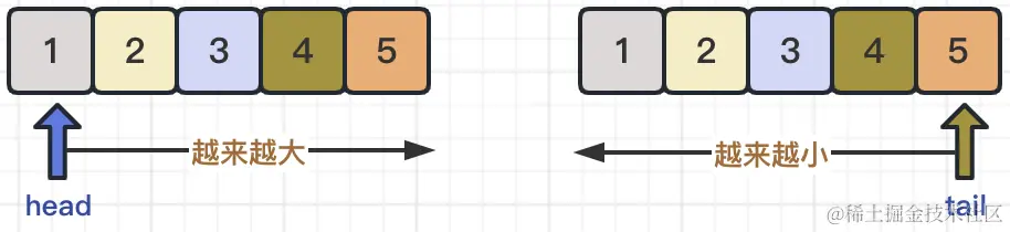 【tail指针】当tail指针向左移动时,nums[tail]值会越来越小;