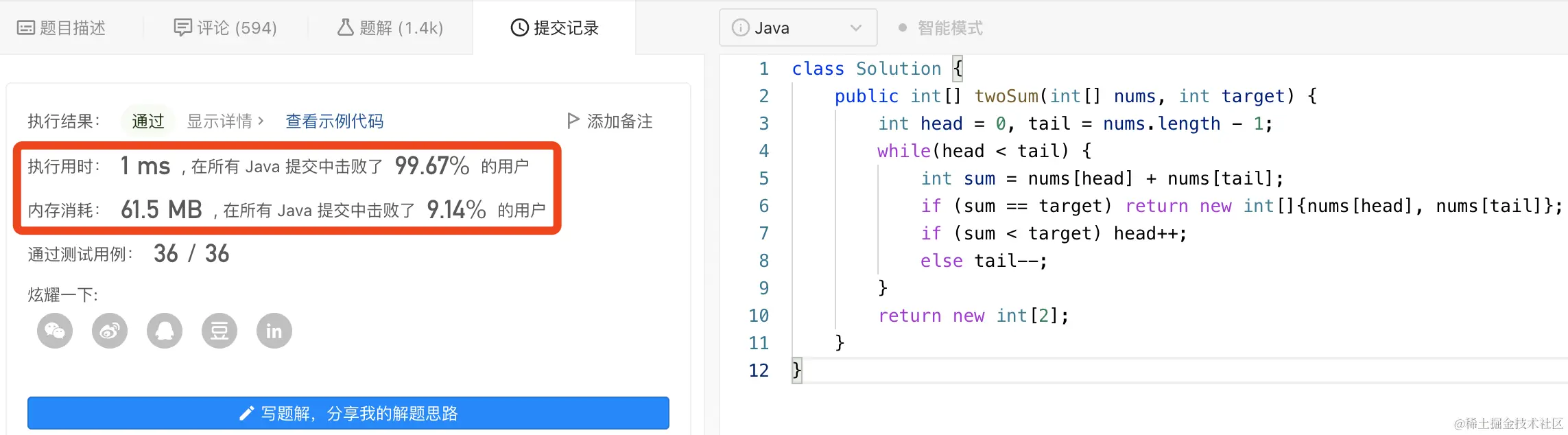 【如果sum==s】则表示找到了目标的两个数,那么最终结果就是nums[head]和nums[tail]这两个数。