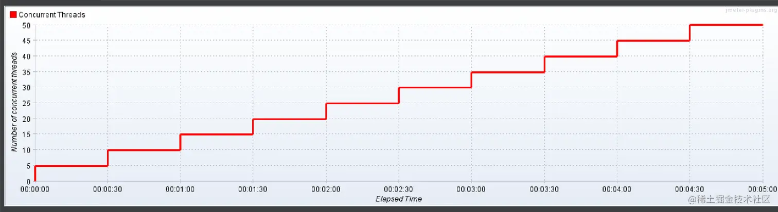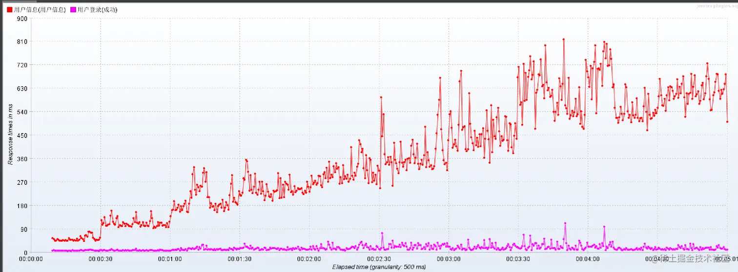 由于在进行压力测试时请求参数没有设置变量,所以响应变化曲线尤为明显: