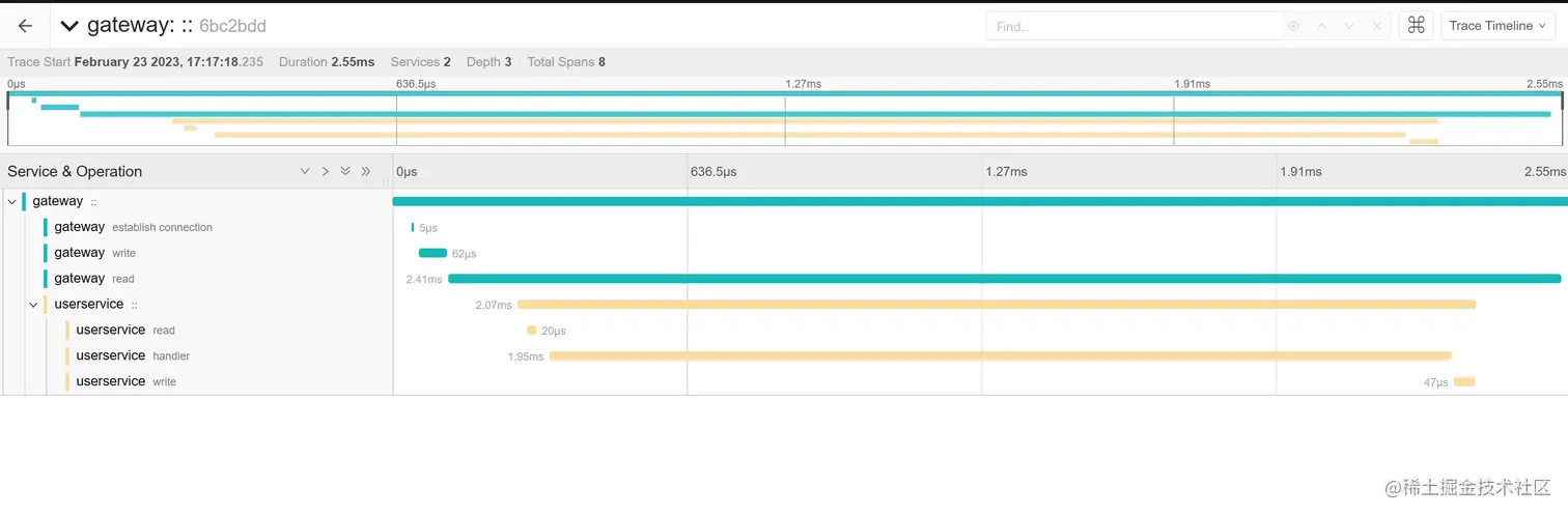 链路调用时间图(一小时内,为了方便观察只调用了用户信息):