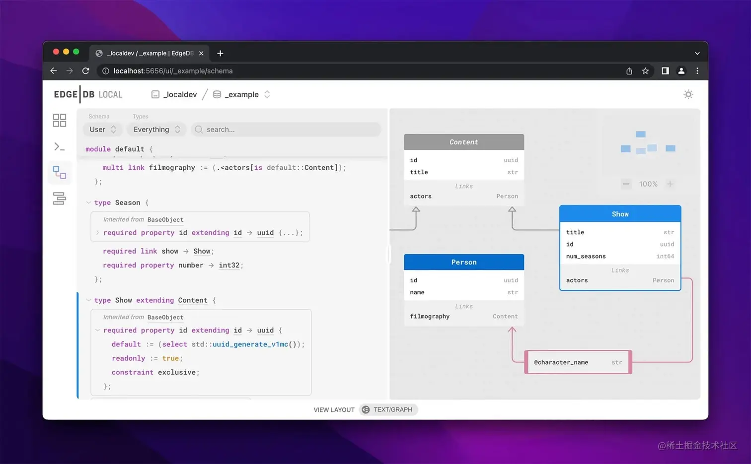 24、edgedb:一款采用图-关系模型的新型开源数据库。一个底层由 PostgreSQL 提供支持的开源数据库,在兼容关系数据库特性的同时,结合了 ORM 的声明模式和 GraphQL 式的深度查询。自带 WebUI 界面,支持在线编辑数据、查询、关系可视化等功能。