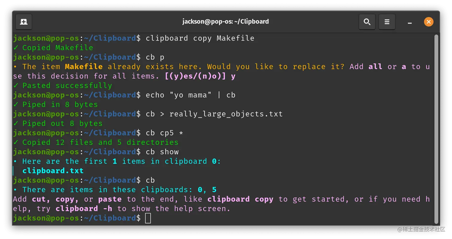 7、Clipboard:小巧便捷的命令行剪贴板。一款用 C++ 编写的剪贴板工具,可以在终端的任何地方复制、剪切和粘贴东西,使用起来就像 GUI 一样方便,相见恨晚的命令行工具,适用于 Windows、Linux 和 macOS 操作系统。