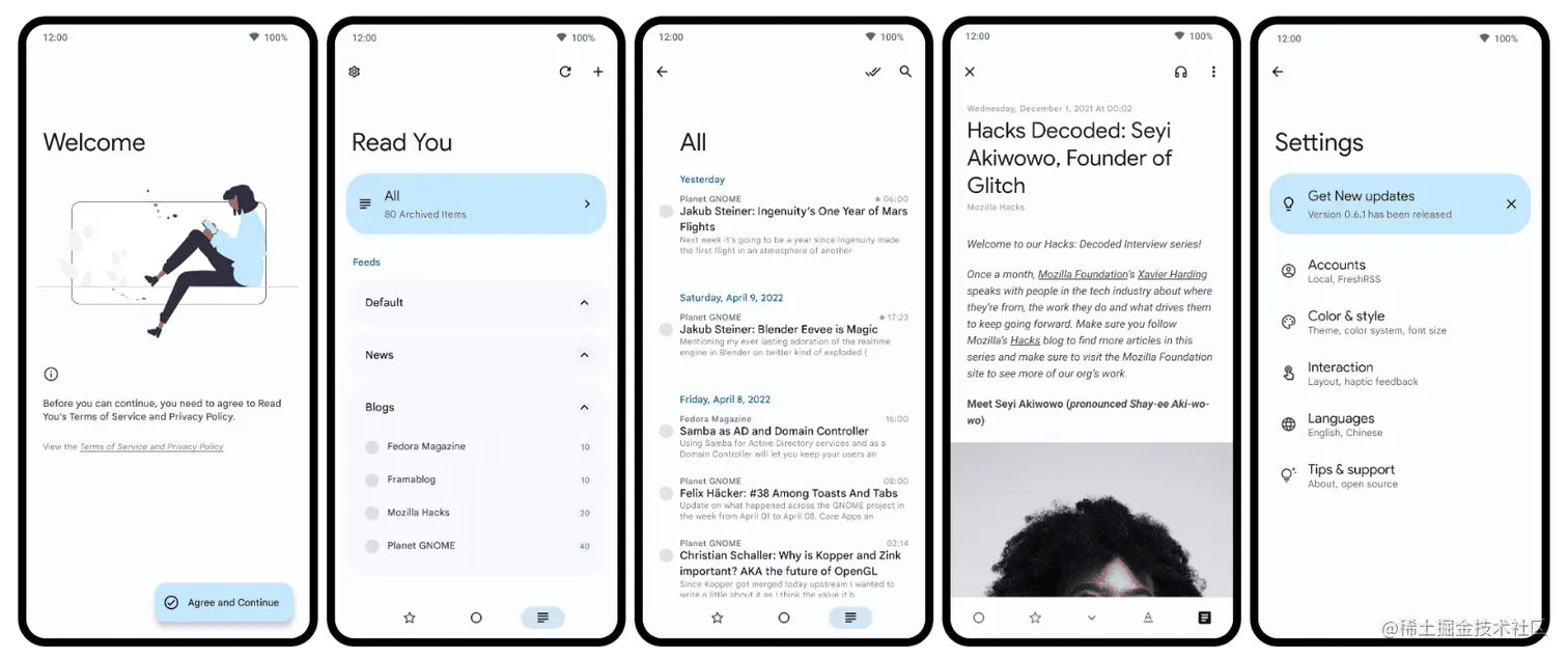 23、ReadYou:一款 Material 风格的 Android RSS 阅读器。界面简洁清爽的 RSS 阅读器,支持订阅 RSS 链接、更新通知、沉浸式阅读等功能