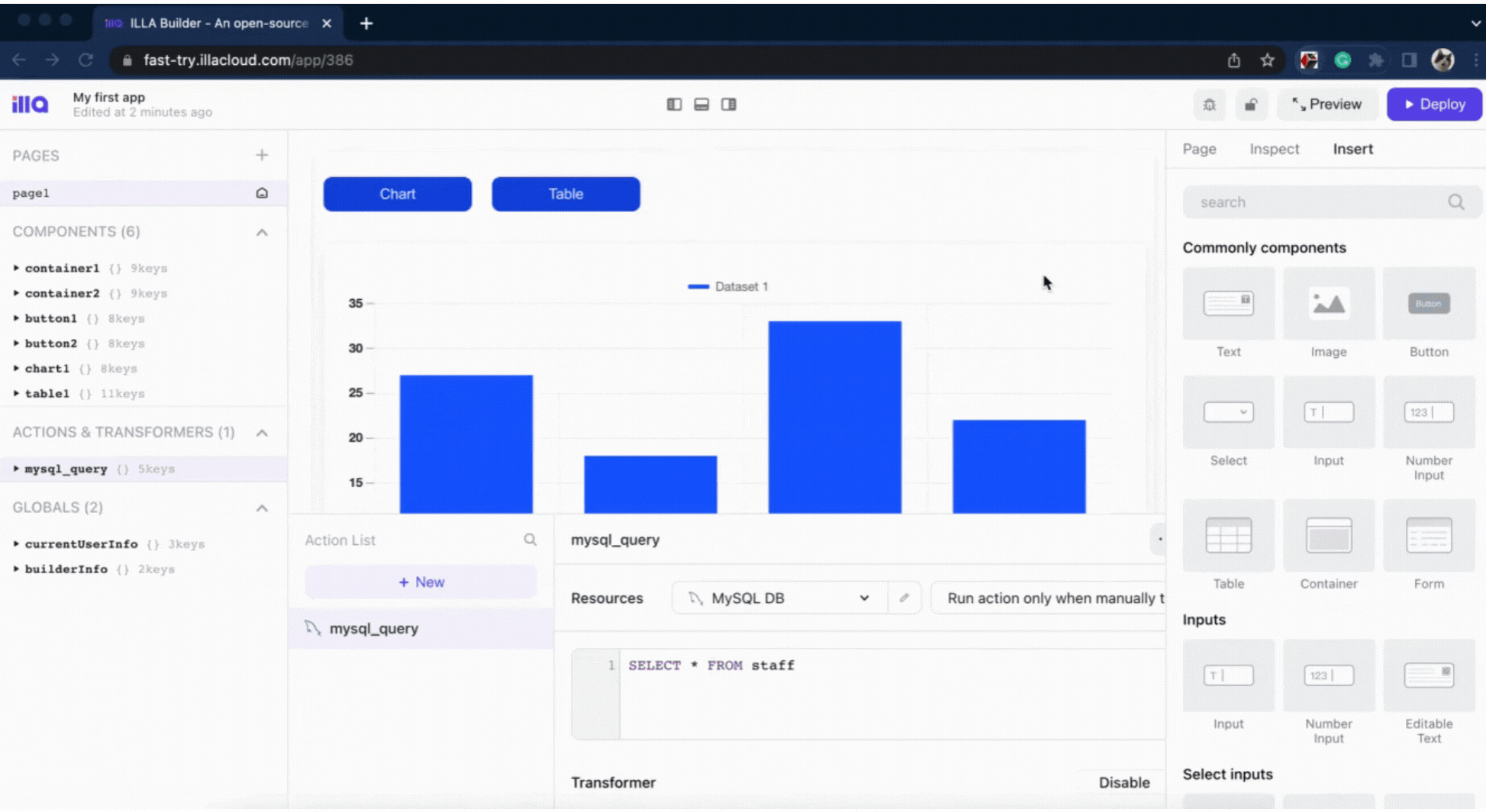 19、illa-builder:一款灵活、清秀的低代码平台。由国内团队开源的低代码平台,它更新积极、处理反馈及时。功能上内置图表、表格、表单等数十种常用组件,直接拖拽即可使用。还支持 GUI 连接数据库或 API,分分钟构建出企业内部应用,支持在线、云服务和 Docker 本地部署多种使用方式。
