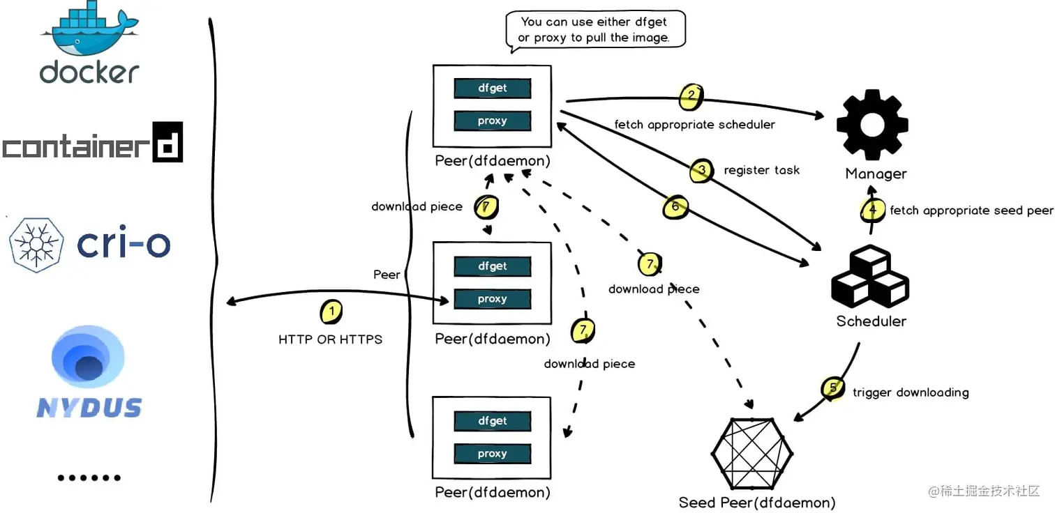 11、Dragonfly2:一款基于 P2P 的智能镜像和文件分发工具。它提供了高效、稳定、安全的基于 P2P 技术的文件分发和镜像加速系统,能够提高大规模文件传输的效率和速率,最大限度地利用网络带宽,适用于应用分发、缓存分发、日志分发和镜像分发等领域。