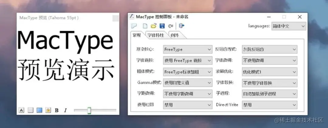 36、mactype:美化 Windows 字体的工具。一款 Windows 字体美体工具,可以解决 Windows 字体虚化的问题,实现类似苹果 macOS 系统的字体渲染效果,安装简单效果惊人。