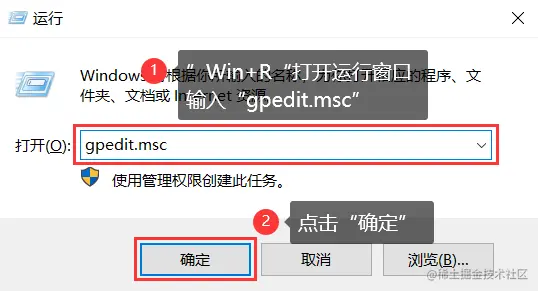 步骤1: 按下【Win+R】,在搜索框中输入【gpedit.msc】,打开【组策略编辑器】;