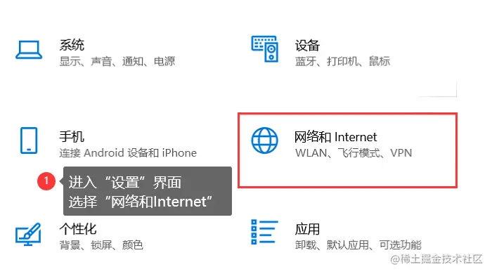 步骤1: 进入【设置】界面,选择【网络和Internet】;