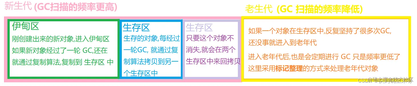 新生代(年龄小的对象) 和 老年代 (年龄大的对象)