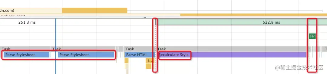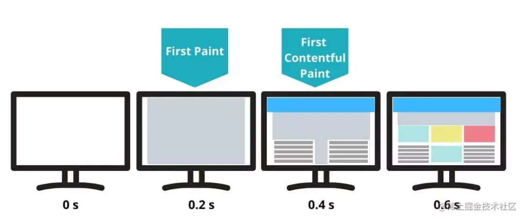 - first contentful paint:指的是开始绘制内容的时机,如文字或图片