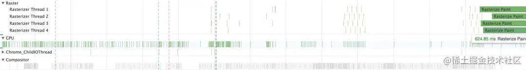 可以看到,在性能面板中主线程在最后调用了栅格线程做实际的渲染。