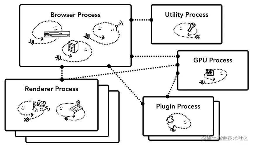 因为尚未决出最终的标准架构,各大浏览器的实现细节各有不同。这里以 Chrome 的架构为例,对照其架构与性能面板的关系。