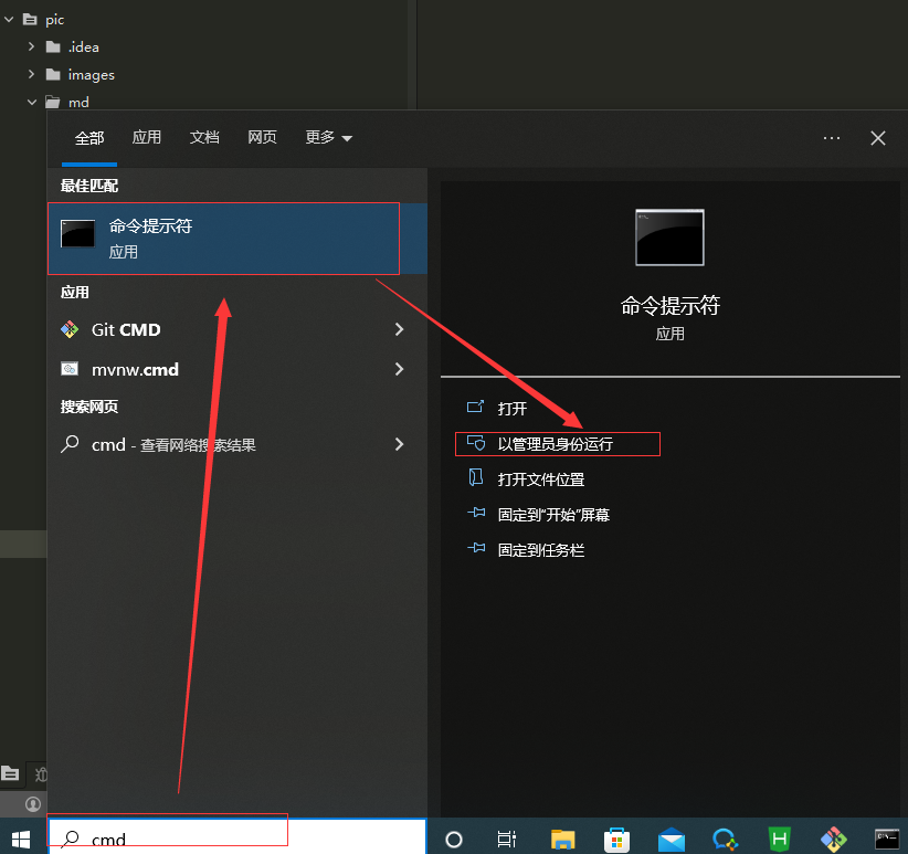 上一步安装完成以后,用管理员身份运行cmd