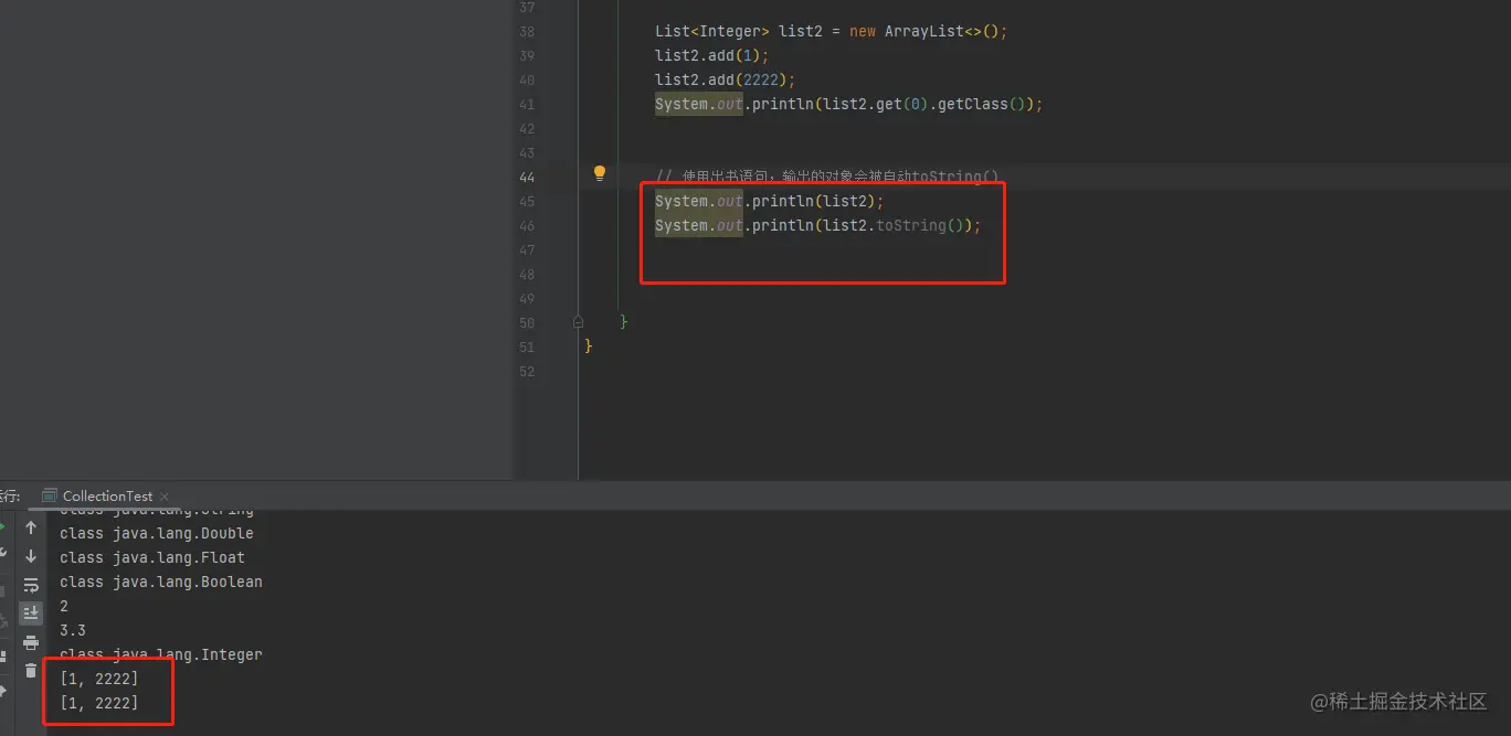 【5】可以直接输出集合对象来打印集合的内容。使用输出语句,输出的对象会被自动toString()