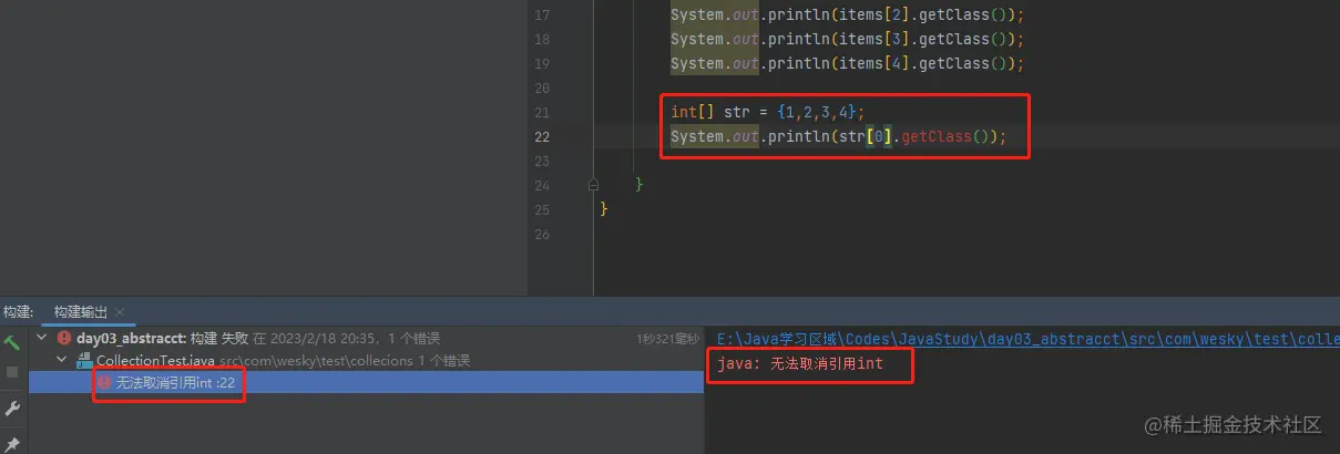 【2】如果数组指定类型为int的时候,使用.getClass()就会提示错误。
