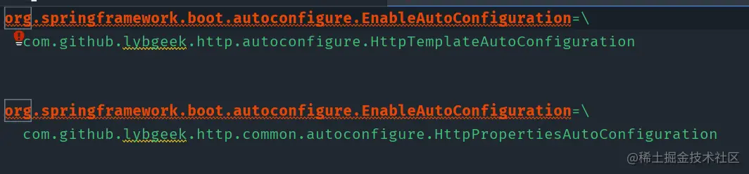 眼尖的朋友应该发现了,同名的配置内容是通过追加的方式,但仅仅追加,其实有时候还满足不了要求,比如spring.factories文件,他需要达到的效果应该是如下图