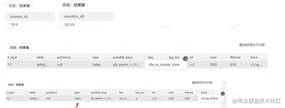 2.1、加索引是在晚上,当前命中的行数比较少,由于当天晚上的时候待审核的处方确实很少,也就是rx_status=5的确实很少,查询优化器感觉反正没多少行,排序不重要,因而就还是选择rx_status索引。
