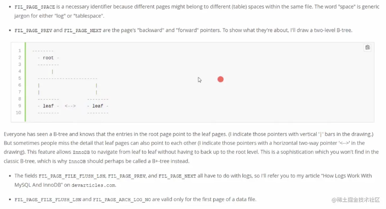 而在MySQL官网上介绍的索引的叶子节点是双向链表。