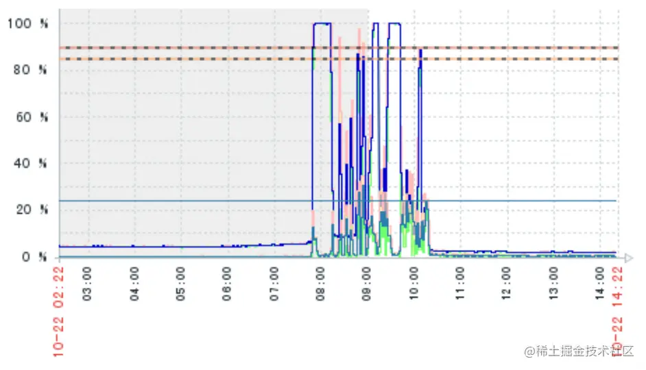 2020年某日上午收到数据库CPU异常报警,对线上有一定的影响,后续检查数据库CPU情况如下,从7点51分开始,CPU从8%瞬间达到99.92%,丝毫没有给程序员留任何情面。