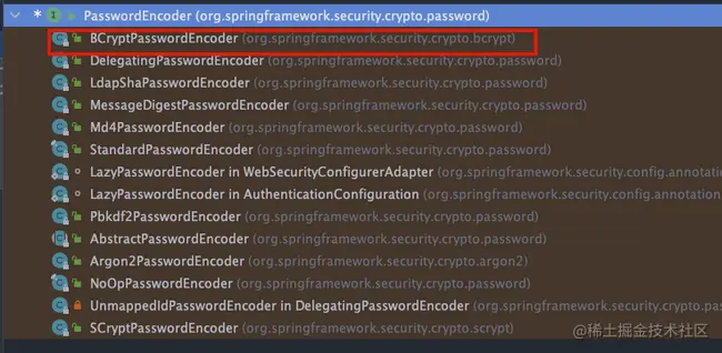 Spring Security 提供了多种加密算法的实现,开箱即用,非常方便。这些加密算法实现类的父类是 PasswordEncoder ,如果你想要自己实现一个加密算法的话,也需要继承 PasswordEncoder。