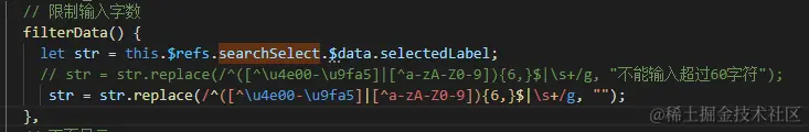 let str = this.$refs.searchSelect.$data.selectedLabel;