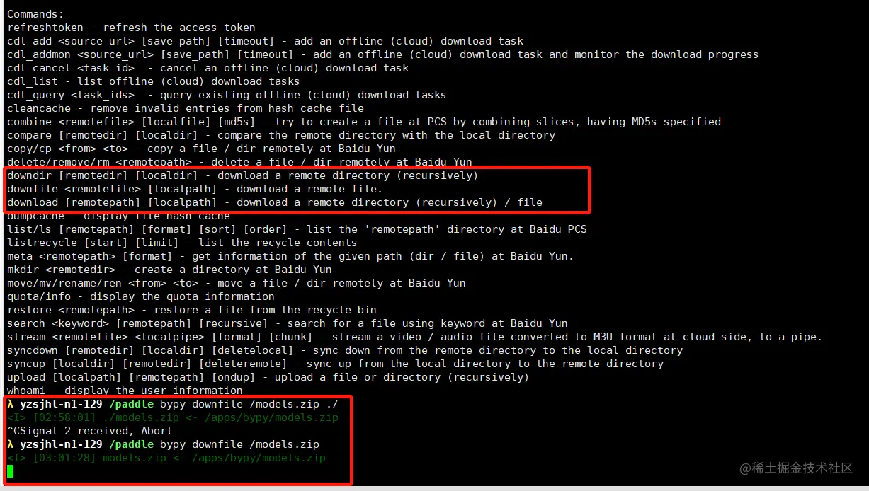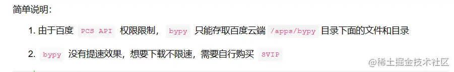 - 注:关于如何下载的斜街,给出的参考链接里有点模糊,最好还是使用bypy -h看下使用说明