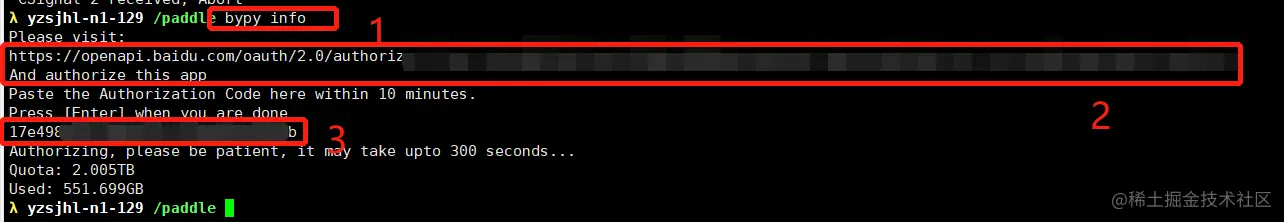 - 具体操作如下:(使用1中命令行获取认证链接,然后复制2那个http开头的认证链接,获取后输入在3的位置)