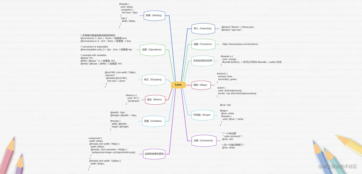 Less是CSS的扩展语言,整合官网文档的思维导图如下: