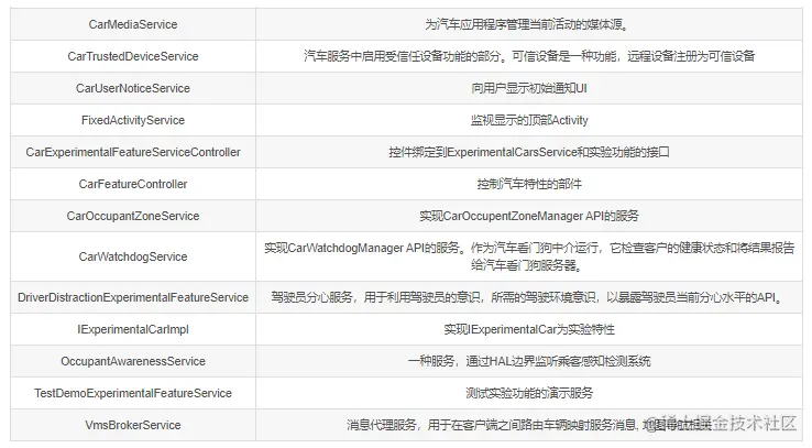 CarService是一个类似Android系统中SystemSever的服务。它由一个服务启动,而里面又控制着数十个子模块服务。