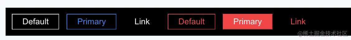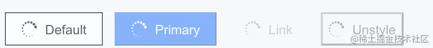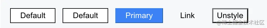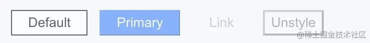 - type 为 default 默认按钮,primary 表示主要按钮,link 表示无边框按钮,unstyle 表示不带任何样式的按钮(方便自己定制)