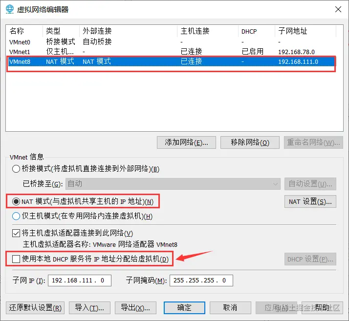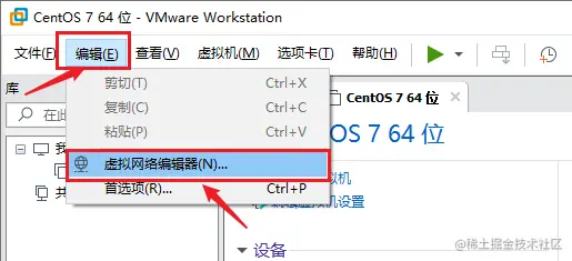 1、点击【编辑】里面的【虚拟网络编辑器】,取消勾选DHCP服务将IP地址分配给虚拟机。