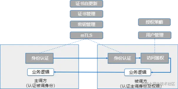 最后我们讲一下访问控制,对于一些安全性较高的业务,比如金融类业务,需要解决服务资源的访问安全问题。主要包括对身份的认证,以及确认身份后对其访问的资源进行鉴权。