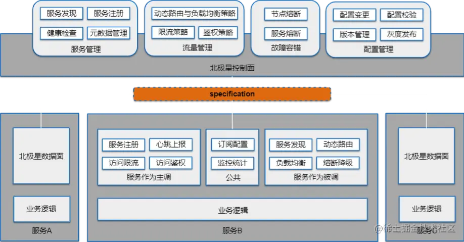 刚刚介绍的都是功能怎么做的一个规范,但是为减少用户的接入成本,我们还需要一个默认实现。下面我们介绍下标准化的默认实现--北极星(github.com/polarismesh)。