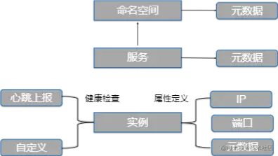 首先是服务定义,服务定义基于两个思路来设计,第一个是最简和可扩展,第二个是和现有生态能够无缝互通。所以我们服务模型是基于命名空间-服务-实例这3层的模型,每一层模型通过元数据来保证可扩展性,与现有的 K8S 以及其他注册中心的服务模型保证兼容及可转化。