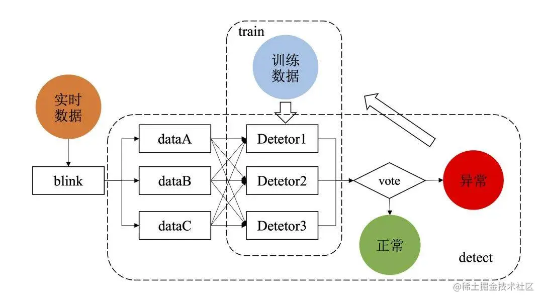 为此,我们训练出一套智能的异常决策系统。将异常点与当时的系统指标进行映射,利用监督学习获取异常状态与各类指标的映射关系。导入异常决策系统,在接受到线上实时的监控数据时,根据多维度监控指标,决策当前系统的运行情况。不同的学习函数给出自身的决策值,通过投票判断当前系统是否处于异常节点。出现异常及时发送告警信息,执行相应的的降级逃生操作。新识别出的异常节点又作为训练数据,补充到监控决策系统的训练中,经过多轮迭代,异常状态与各类指标的映射关系会更加科学,监控的查准率和查全率也会不断提高。做到系统异常及时发现,系统正常抖动不误报。实现系统异常发生快速介入,问题及时恢复,保障商品的顺利履约。