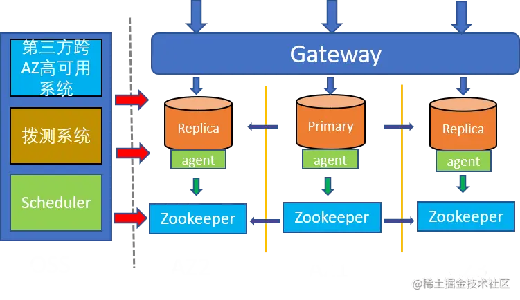 ● 通过心跳上报给Scheduler,Scheduler根据实例状态做出不同的故障决策,确定是否需要发起切换,以及是可用区内的切换还是跨可用区的切换。