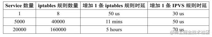 IPVS刷新规则的时延明显要低iptables几个数量级。