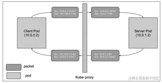 提供服务的Pod处理完数据包后返回响应包给客户端:10.0.0.2;